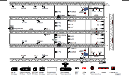 If external parties use your building, technical documents are required in addition to any house rules. For example, a tenant would like to know what equipment is in the house, how the fixed technology is hung and what other possibilities there are, what the (stage) dimensions and capacities are, etc. etc. We can put these documents (floor plan, stage, fly framework, screens, lighting plan in the grid, specifications of the audio installation plus a microphone list) in a clear PDF form for you.