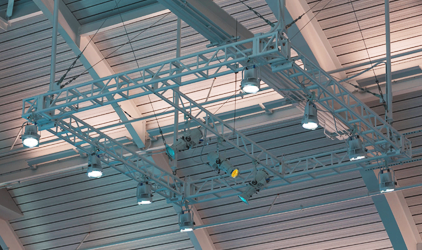 To give technology a place in a space, a mounting construction is needed, sometimes a simple bracket, cable duct or a piece of 50mm round aluminum, but sometimes a grid is hung with or without an automated flying trussing framework, incl. all quality marks such as T.U.V. and NEN. Every pipe, cable, cord and wire or "custom build" objects can be subjected to a test or receive a quality mark. The digital control of a system is often done by an I.S.O. and/or VCE/VBT certified master/technician or programmer. The same applies to the total assembly and design (almost everything hangs above people). Safety is essential.